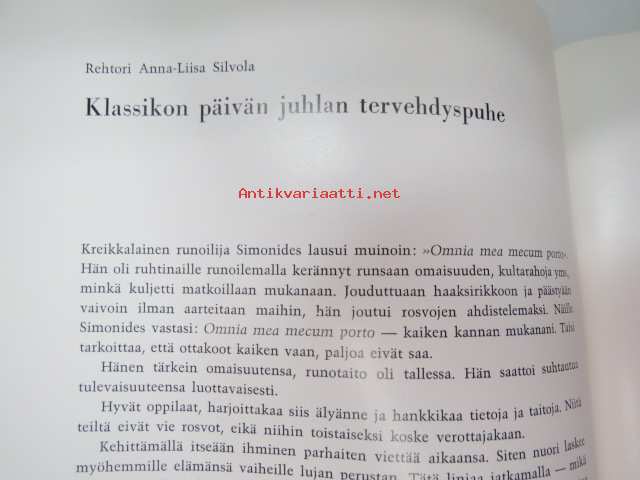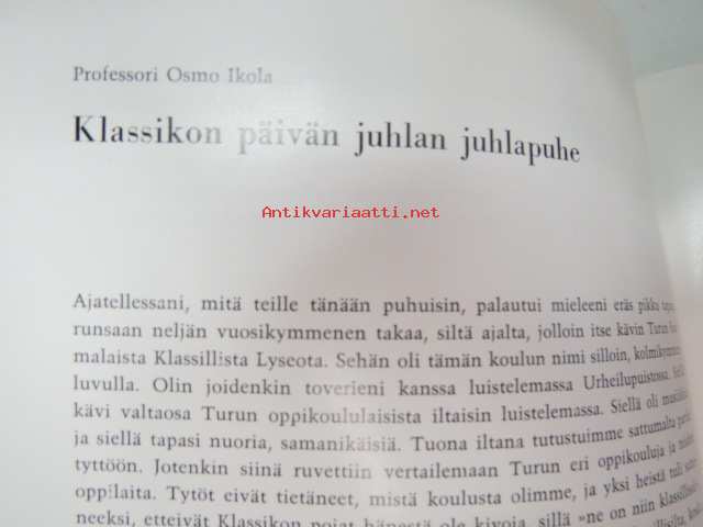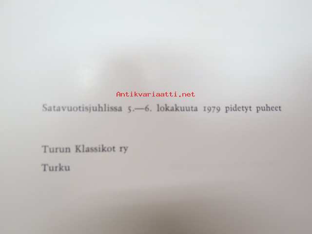 Turun Klassillinen Lyseo 90-vuotias - 25.10.1969 vietetyssä juhlassa pidetyt puheet -speeches held at the party 25th of october 1969
