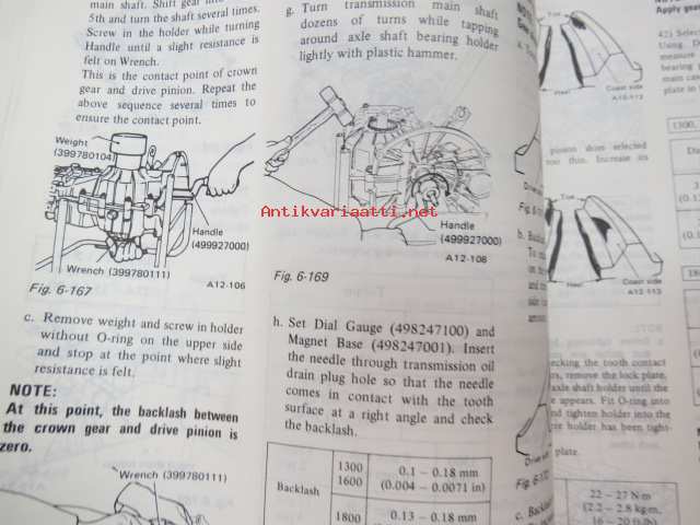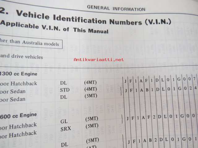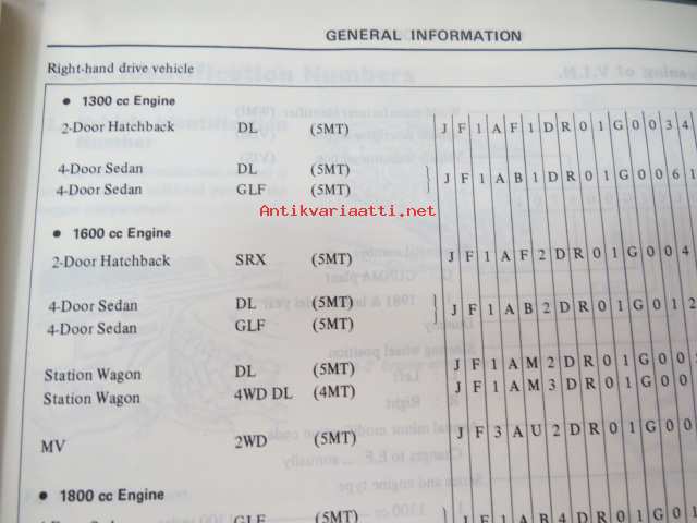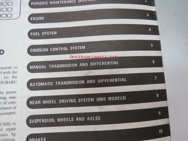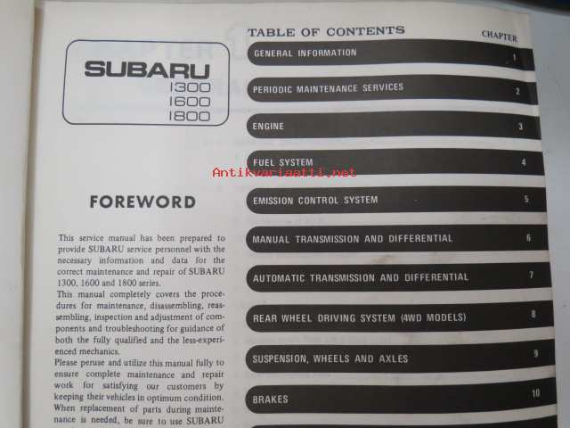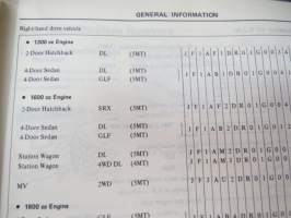 Subaru 1300, 1600, 1800 Engine & Body Service Manual -huolto-ohjekirja englanniksi