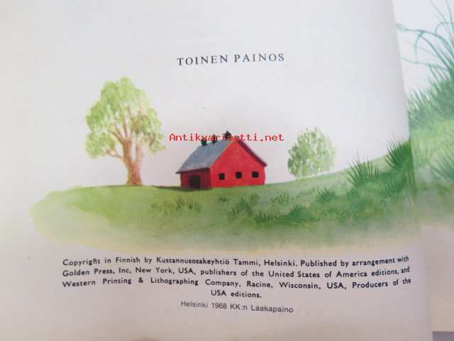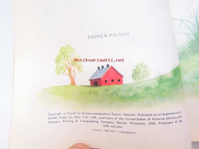 | Saatavilla | 1 kpl | | Julkaisuvuosi | 1968 | | Painos | 2. | | Kunto | K2 | | Sidonta/painoasu | Kuvitettu kovakantinen | | Kielet | Suomi |