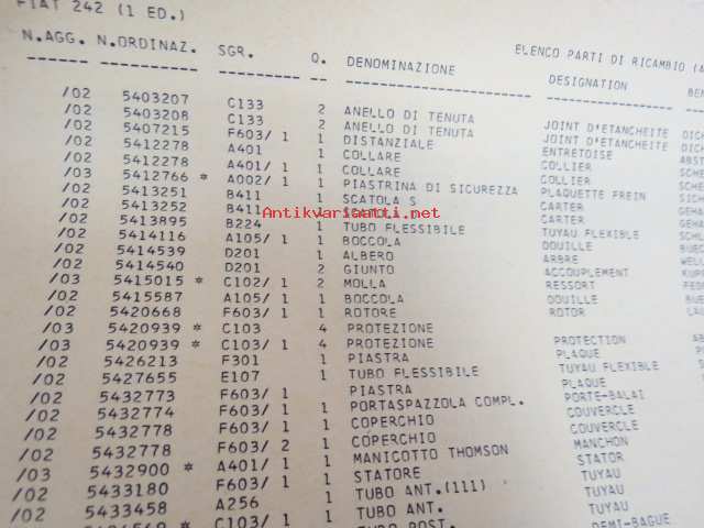 Fiat 242 Catalogo parti di ricambio / Catalogue de pièces détachèes / Ersatzteilekatalog / Spare parts catalog / Catálogo de piezas de repuesto -varaosaluettelo