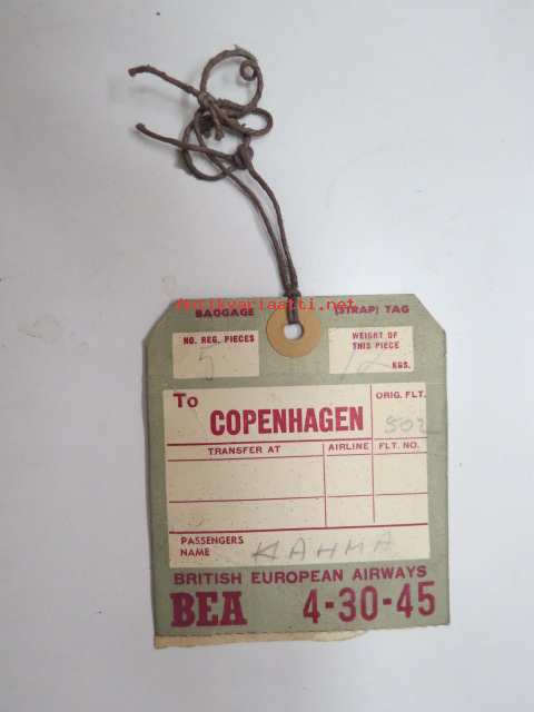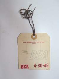 BEA British European Airways Baggage Strap Tag 4-30-45 -matkalaukkumerkki