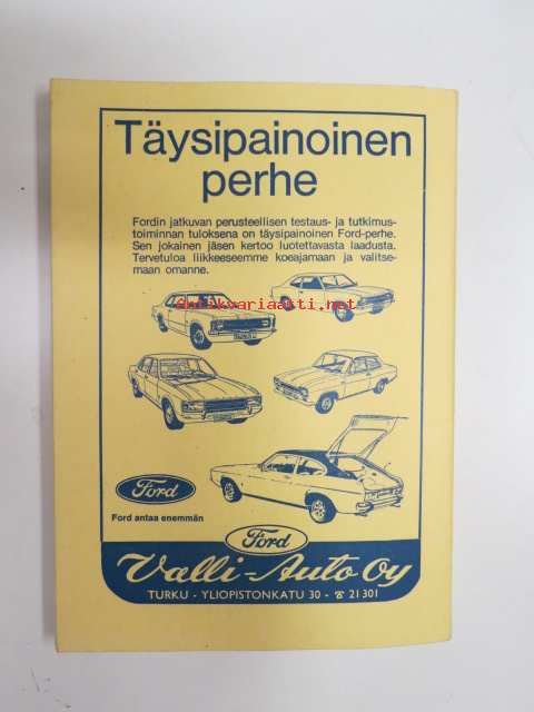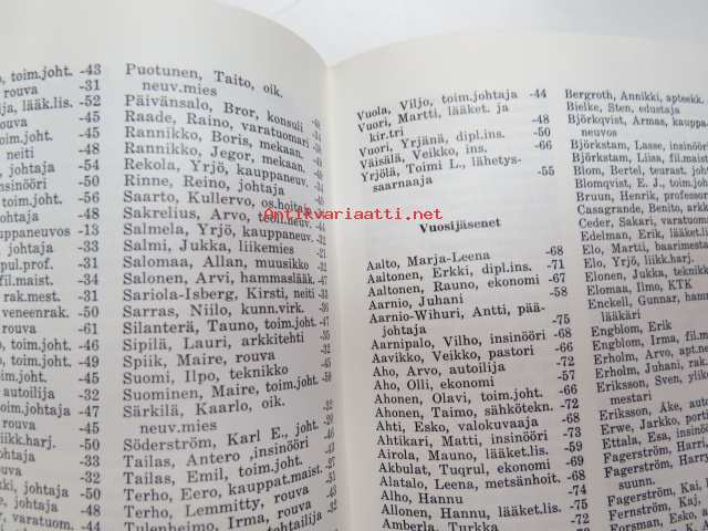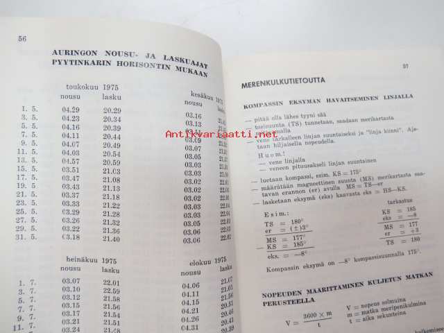 | Saatavilla | 1 kpl | | Julkaisuvuosi | 1975 | | Sivuja | 159 | | Painos | 1. | | Kunto | K3 | | Sidonta/painoasu | Nidottu (pehmeäk.) | | Kielet | Suomi |