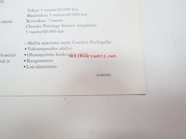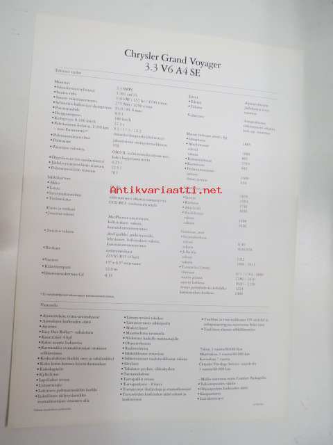 Chrysler Grand Voyager 3.3. V6 A 4 SE -myyntiesite / brochure
