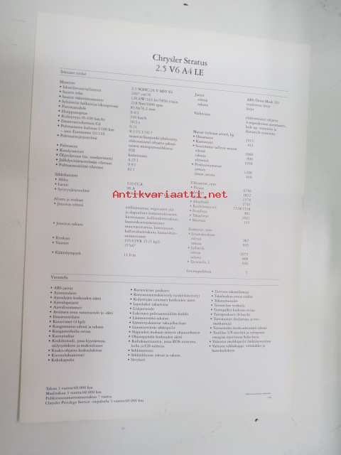 Chrysler Stratus 2.5 V6 A4 LE -myyntiesite / brochure