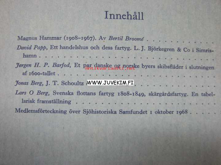 Sjöhistoriska Samfundet, 196816 x 23 cm kirja.