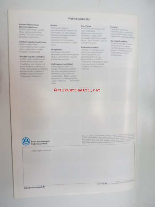 Volkswagen Golf 1993 -myyntiesite / brochure