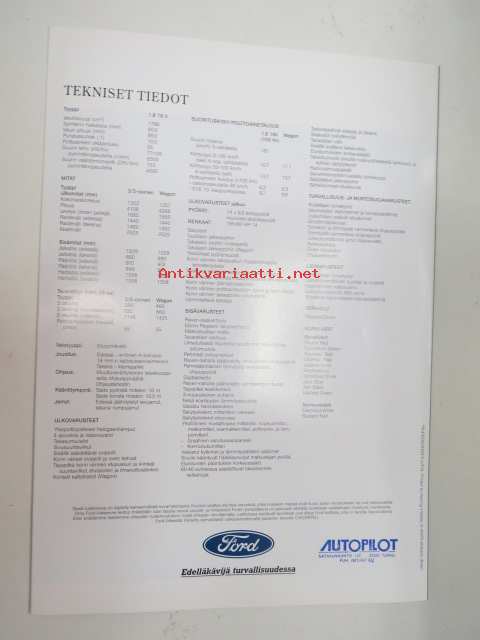 Ford Escort Si 1994 -myyntiesite / brochure
