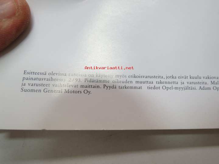 Opel Corsa 1993 -myyntiesite / brochure
