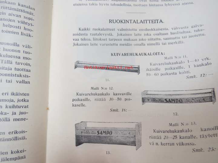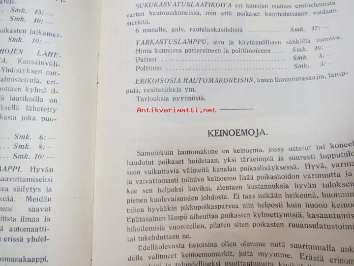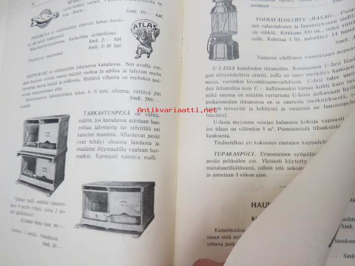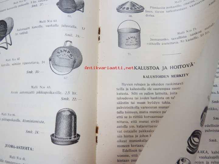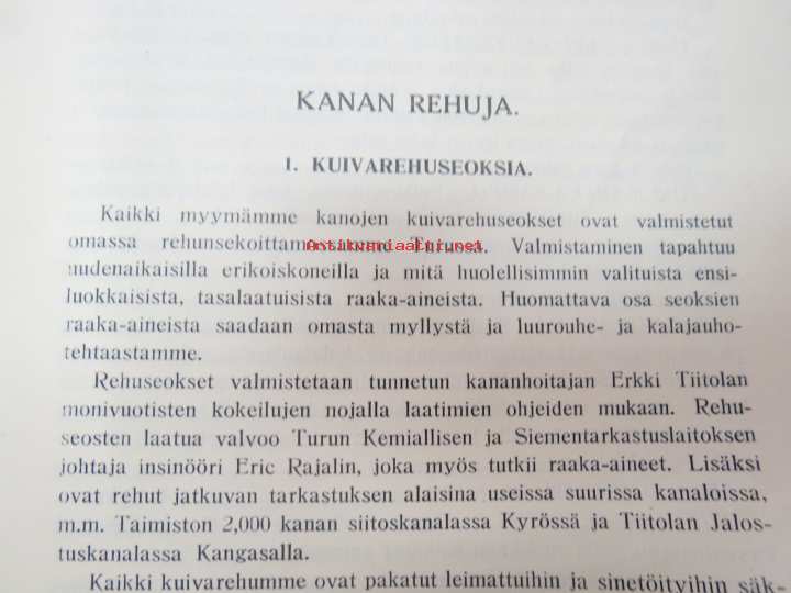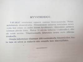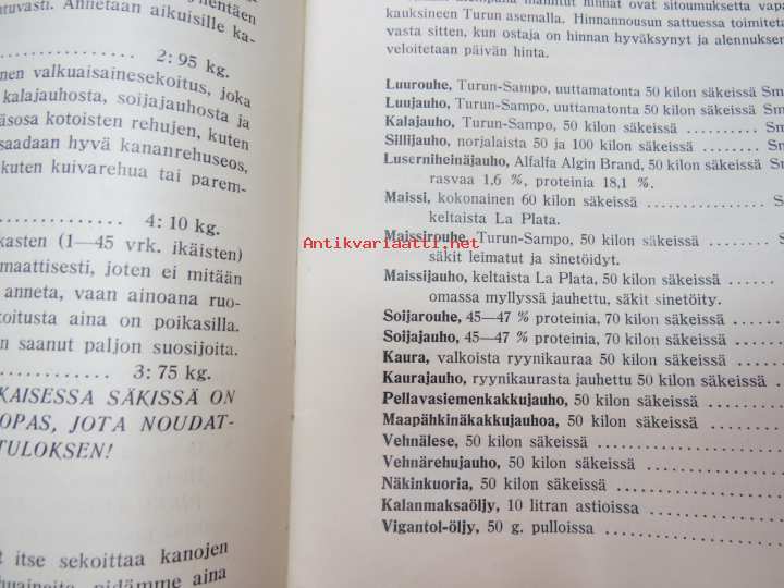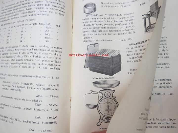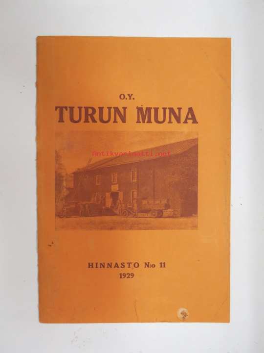 Kanaloille rehuja, ruokintavälineitä, hoitovälineitä, hautomakoneita, keinoemoja - Oy Turun Muna - Hinnasto nr 11 1929 kananrehujen ja ja kanatalouden välineiden kuvitettu luettelo -illustrated poultry feeds & equipment catalog16 x 24 cm. Mukana muutama irtoesite.