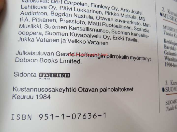 | Saatavilla | 1 kpl | | Julkaisuvuosi | 1984 | | Sivuja | 400 | | Painos | 1. | | Kunto | K2 | | Sidonta/painoasu | Nidottu (pehmeäk.) | | ISBN | 951-1-07636-1 | | Kielet | Suomi |