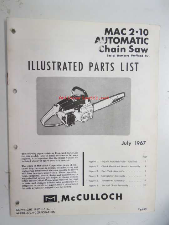 McCulloch MAC 2-10 Chain Saw (Serial Numbers Prefixed B12-) Illustrated Parts List -varaosaluettelo