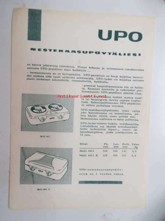 Upo nestekaasupöytäliesi -myyntiesite / brochure