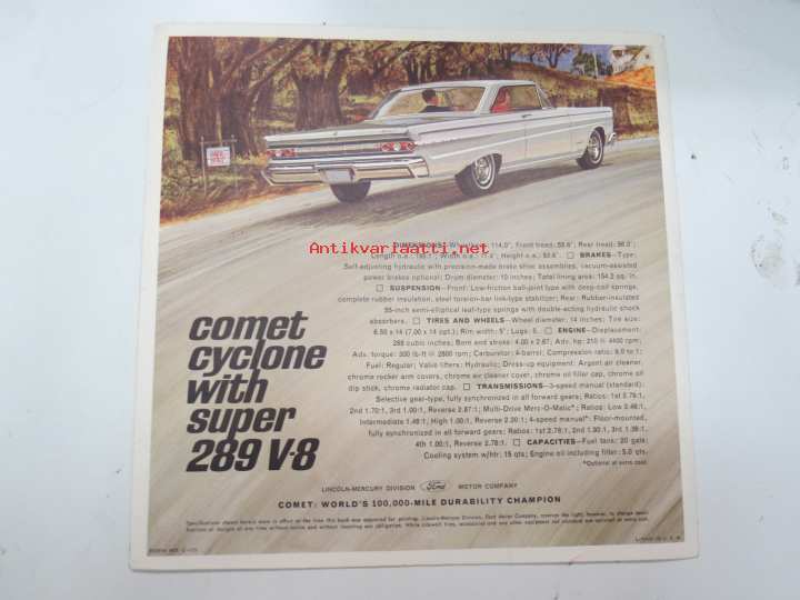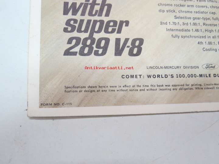 Mercury Comet - Cyclone with super 289 V-8 -myyntiesite / brochure