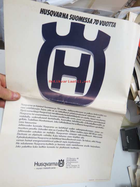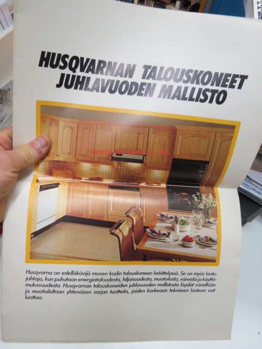 Husqvarna kotitalouskoneet 1983 -myyntiesite / brochure in finnish