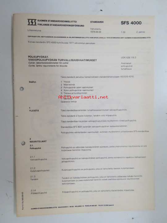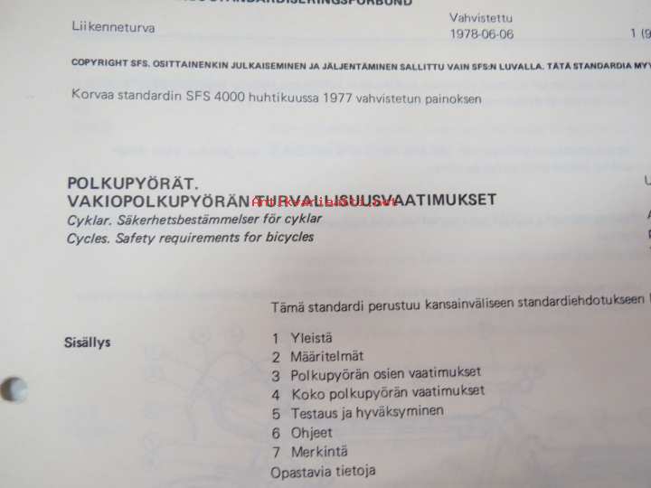 Vakiopolkupyörän turvallisuusvaatimukset SFS 4000 standardi