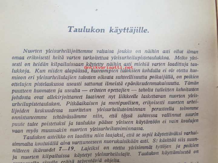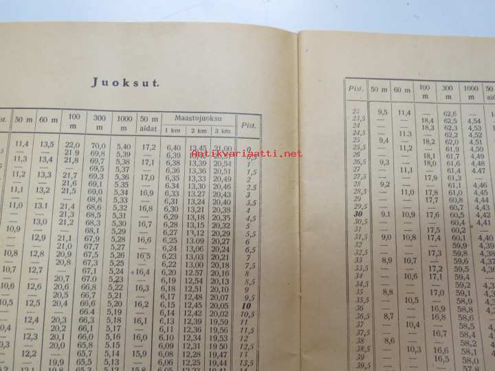 Nuorten yleisurheilun pistetaulukko