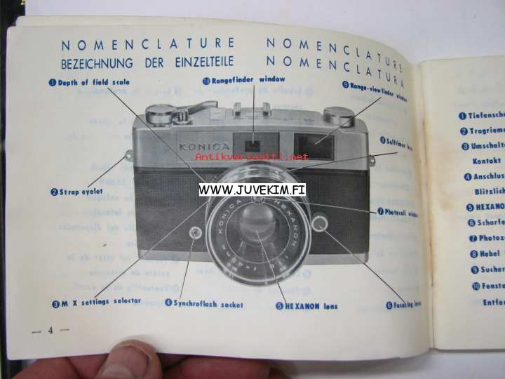 Konica Auto S2 kamera -käyttöohjekirja englanniksi