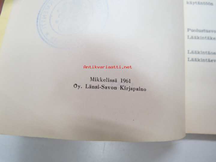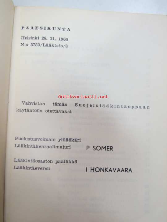 Suojelulääkintäopas (Slulääk-opas) 1961 -finnish army rules for medical care