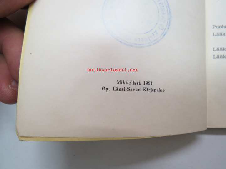 | Saatavilla | 1 kpl | | Julkaisuvuosi | 1961 | | Sivuja | 132 | | Painos | 1. | | Kunto | K2 | | Sidonta/painoasu | Nidottu (pehmeäk.) | | Kielet | Suomi |