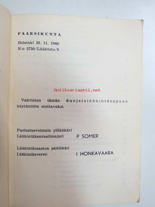 Suojelulääkintäopas (Slulääk-opas) 1961 -finnish army rules for medical care