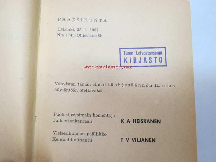 Kenttäohjesääntö (KO III) 1957 -finnish army field manual
