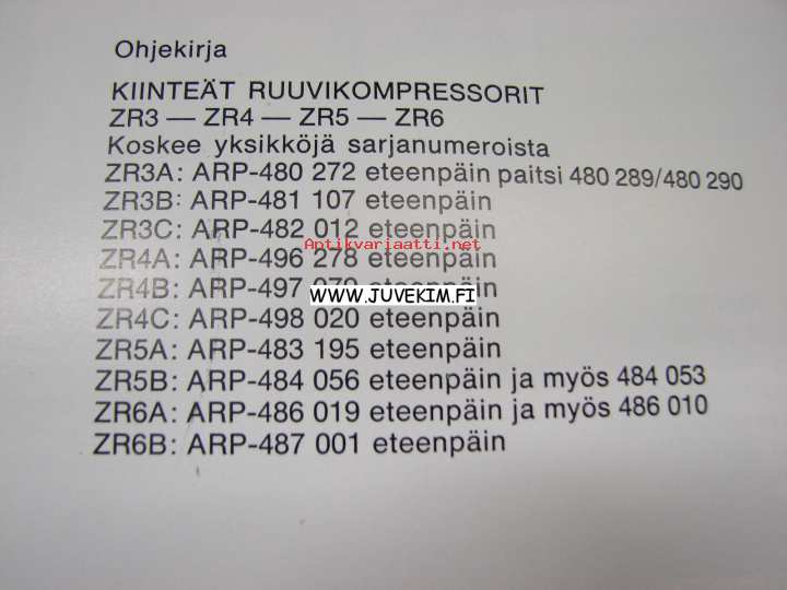 Atlas Copco ZR3-ZR4-ZR5-ZR6 Kiinteät ruuvikompressorit -ohjekirja
