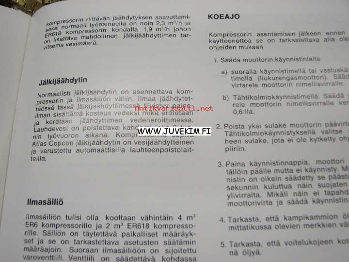 Atlas Copco ER6, ER618 ilmakompressori -ohjekirja