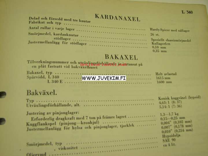 Volvo L 340 Verkstadshandbok Avd. 13 Specifikationer -korjaamokirjasarjan osa
