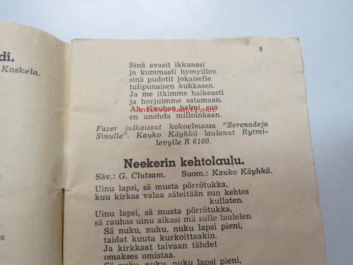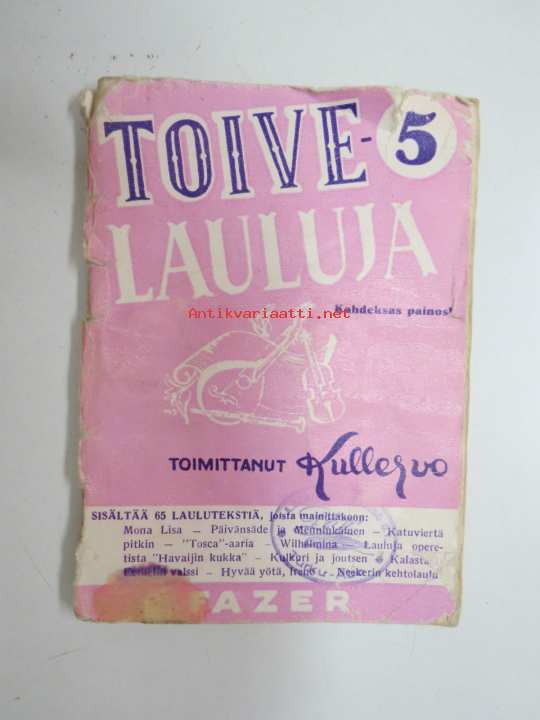 Toivelauluja 5, toimittanut Kullervo -popular songs