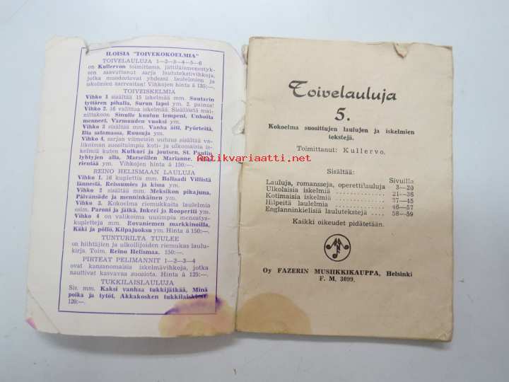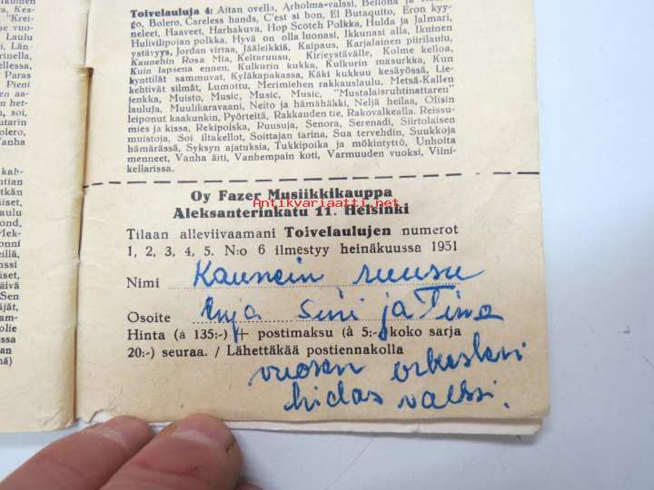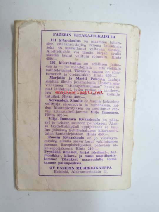 Toimittanut Kullervo, Oy Fazerin Musiikkikauppa, 195110 x 15 cm.