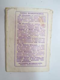 | Saatavilla | 1 kpl | | Julkaisuvuosi | 1951 | | Sivuja | 62 | | Painos | 8. | | Kunto | K2 | | Kulunut, worn out | | Sidonta/painoasu | Nidottu (pehmeäk.) | | Kielet | Suomi |