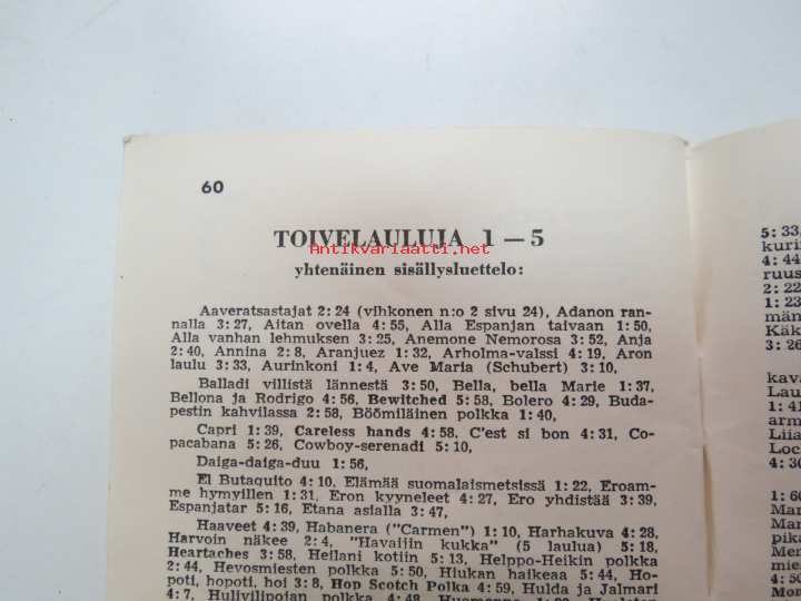 Toivelauluja 6, toimittanut Kullervo -popular songs