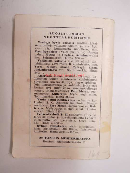 Toimittanut Kullervo, Oy Fazerin Musiikkikauppa, 195110 x 15 cm.