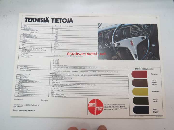 Toyota Crown 2100 Diesel 1974 -myyntiesite / brochure