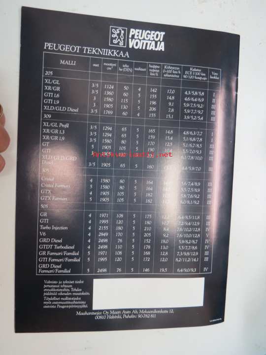 Peugeot Voittaja 1987 mallisto -myyntiesite / brochure