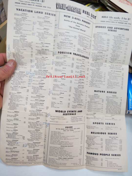 View-Master Reel list / mainosesite koneista ja kiekoista, englanninkielinen