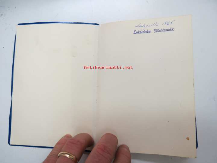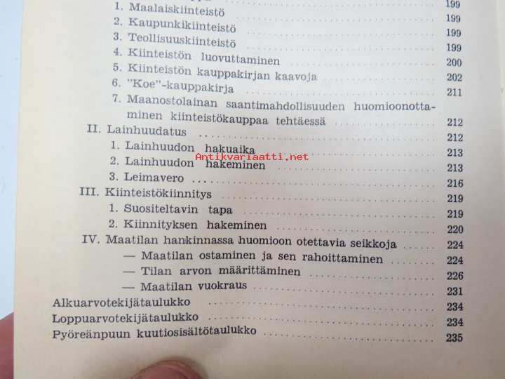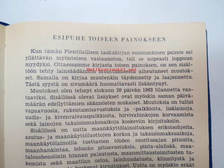 | Saatavilla | 1 kpl | | Julkaisuvuosi | 1963 | | Sivuja | 236 | | Painos | 2. täydennetty painos | | Kunto | K2 | | Sidonta/painoasu | Nidottu (pehmeäk.) | | Kielet | Suomi |