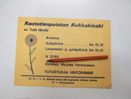 Rautatienpuiston Kukkakioski - omistaa Marjatta Hermansson -mainos / flower shop ad
