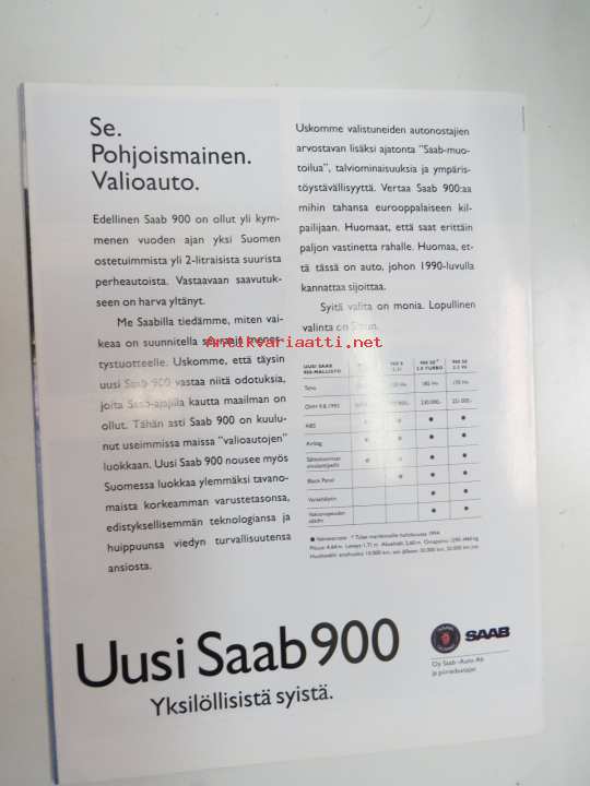 Saab 900 1993 -myyntiesite / brochure