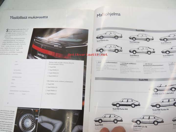 Saab mallivuonna 1993 9000CD, 9000CS, 9000CC, 900 -myyntiesite / brochure