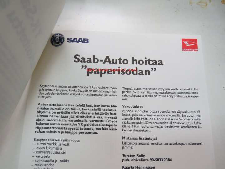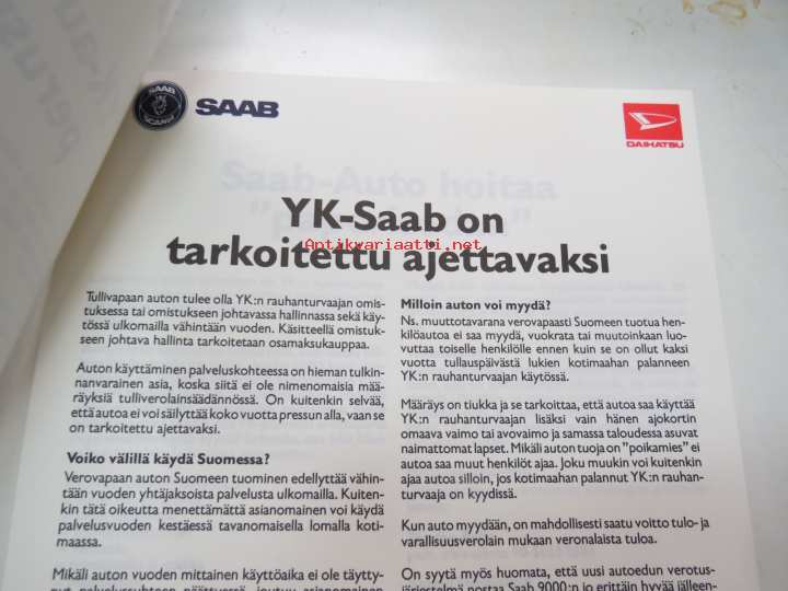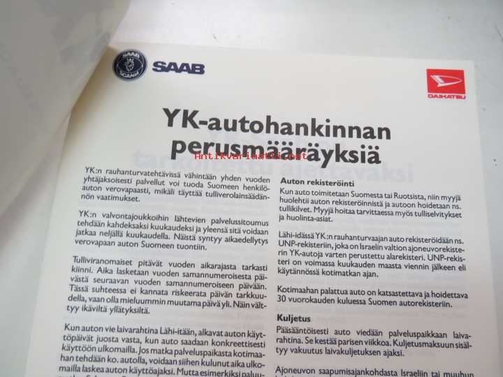| Saatavilla | 1 kpl | | Julkaisuvuosi | 199? | | Sivuja | 4 | | Kunto | K3 | | Sidonta/painoasu | Pienpainate | | Kielet | Suomi |