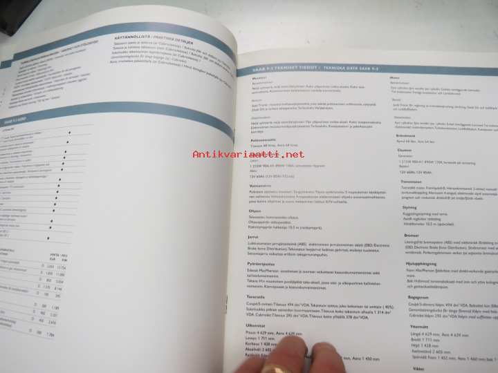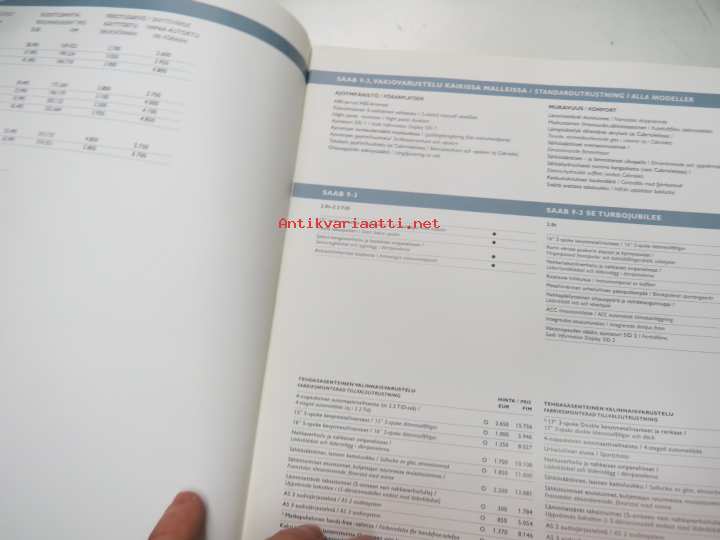 Saab 93 varusteet ja hinnasto - utrustning och prislista 2.1.2002 -myyntiesite / brochure
