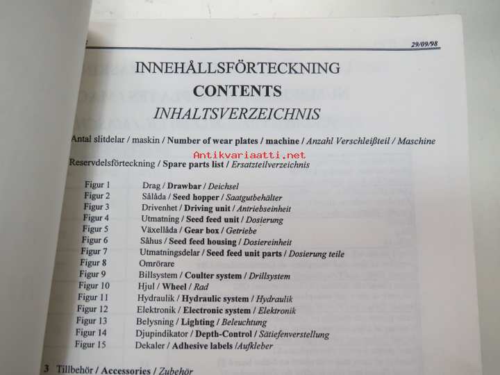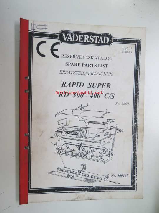 Väderstad Rapid Super RD 300 - 400 C/S nr. 3600- Reservdelskatalog / Spare parts list / Ersatzteilverzeichnis -varaosaluettelo