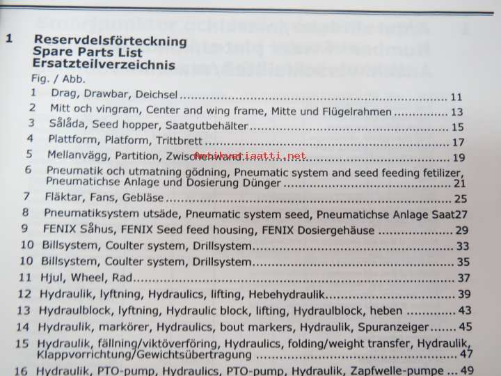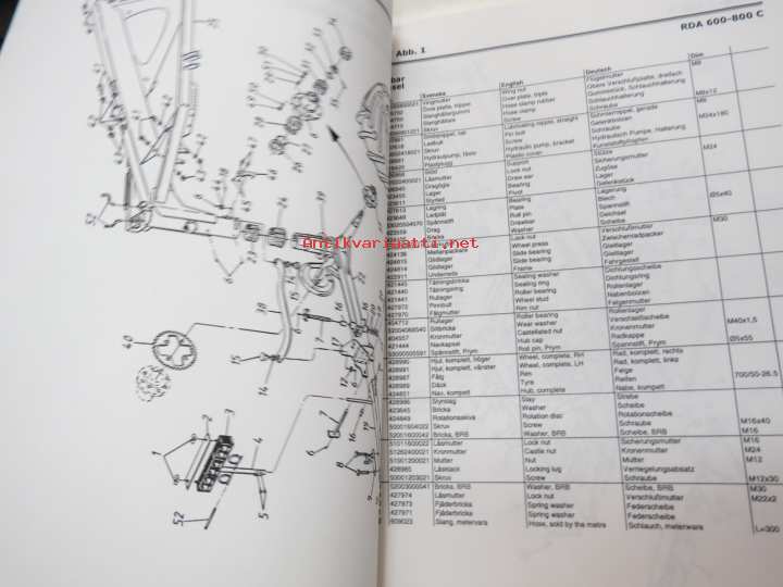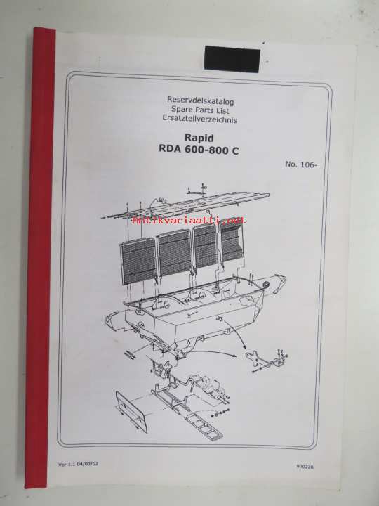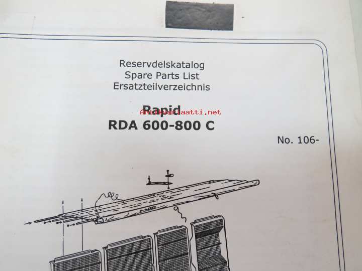 Väderstad Rapid RDA 600-800 C nr. 106- Reservdelskatalog / Spare parts list / Ersatzteilverzeichnis -varaosaluettelo