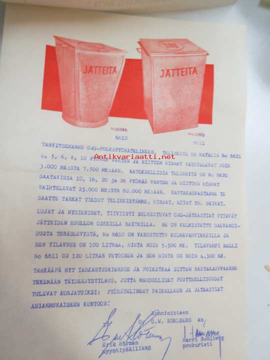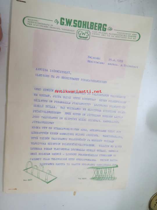 Oy G.W. Sohlberg Ab, Helsinki 25.4.1959 - GWS polkupyörätelineet & jäteastiat -myyntiesite / brochure
