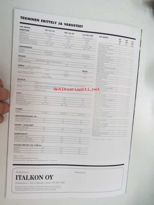 Fiat Bravo -myyntiesite / brochure