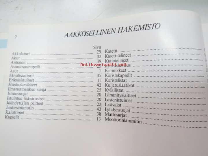 | Saatavilla | 1 kpl | | Julkaisuvuosi | 19?? | | Sivuja | 48 | | Kunto | K2 | | Sidonta/painoasu | Nidottu (pehmeäk.) | | Kielet | Suomi |
