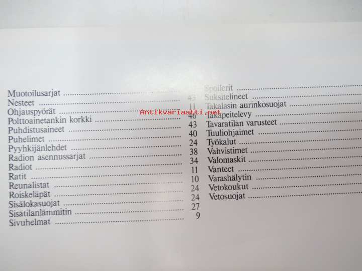 Fiat Tarvikkeita (automyyjän käyttöön tarkoitettu, ei yleisölle) tuoteluettelo / myyntiesite / brochure