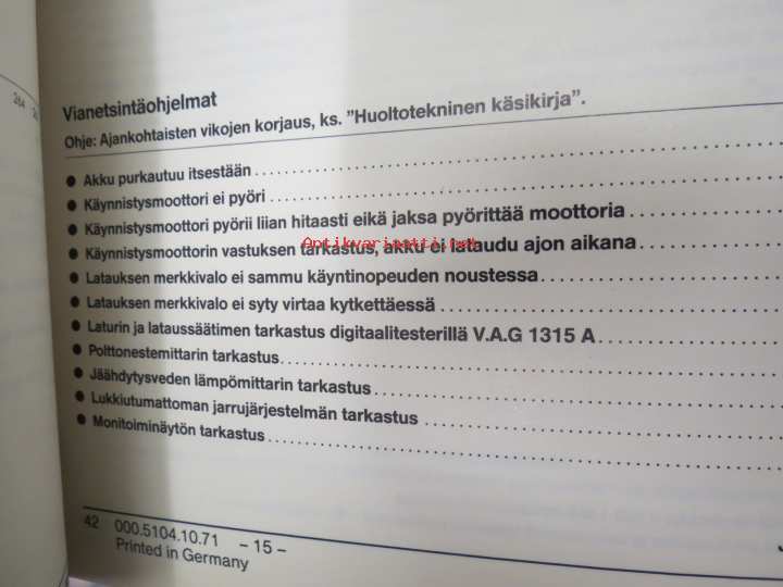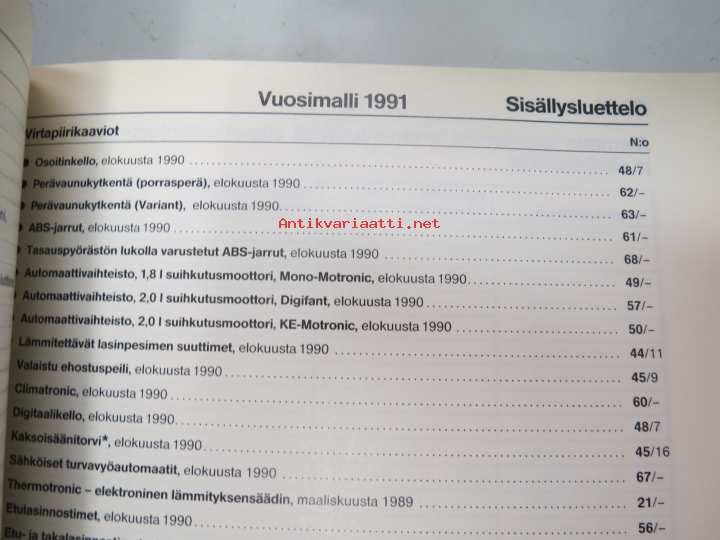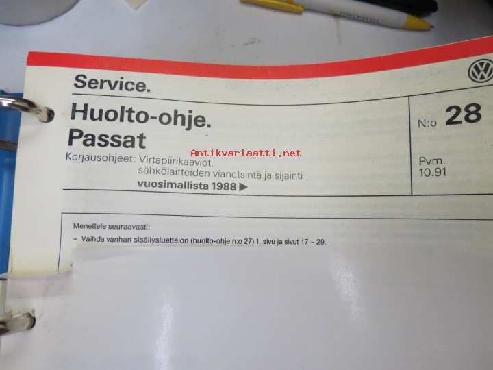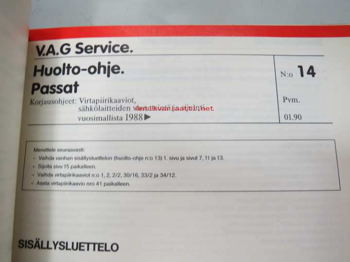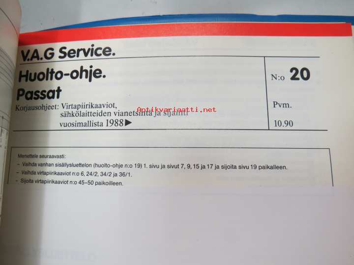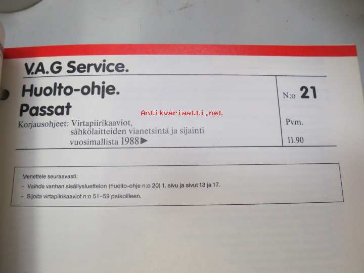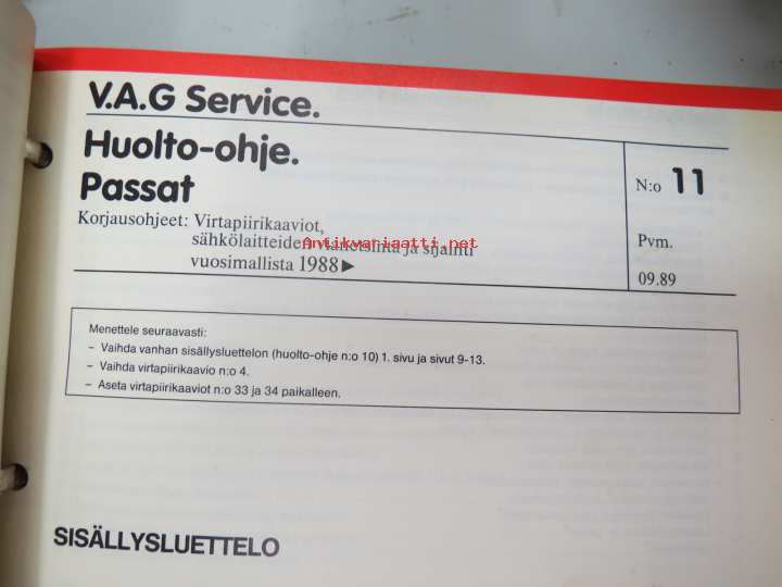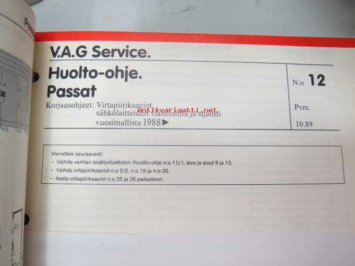 Volkswagen Passat Korjausohjeet, virtapiirikaaviot sähkölaitteiden vianetsintä ja sijaintipaikat 1988- , tehtaan / huollon alkuperäinen kansio