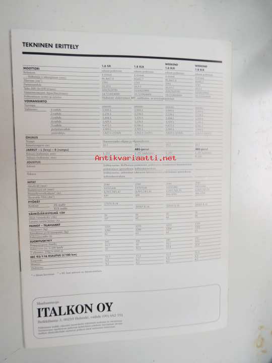 Fiat Marea, Marea Weekend -myyntiesite / brochure